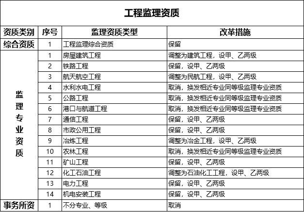 工程监理资质类别和等级34项;(压减为21项,压减38%)