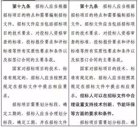 2、第十九条增设规定:招标人可以在招标文件中合理设置支持技术创新、节能环保等方面的要求和条件。