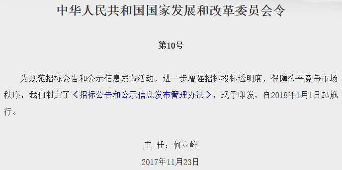 国家发改委印发《招标公告和公示信息发布管理办法》,全国一盘棋,信息10年内可追溯!