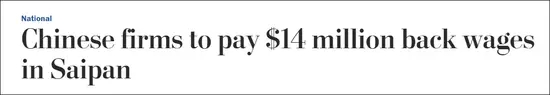 要求4家建筑公司向在塞班岛建造赌场的数千名中国工人支付约1400万美元的欠薪和赔偿金。报道称,这4家公司的总部均位于中国。