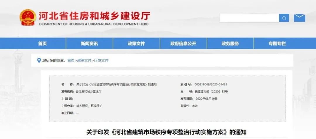 8月19日,河北省住建厅印发《河北省建筑市场秩序专项整治行动实施方案》,定于8月20日起在全省范围内开展建筑市场秩序专项整治行动。