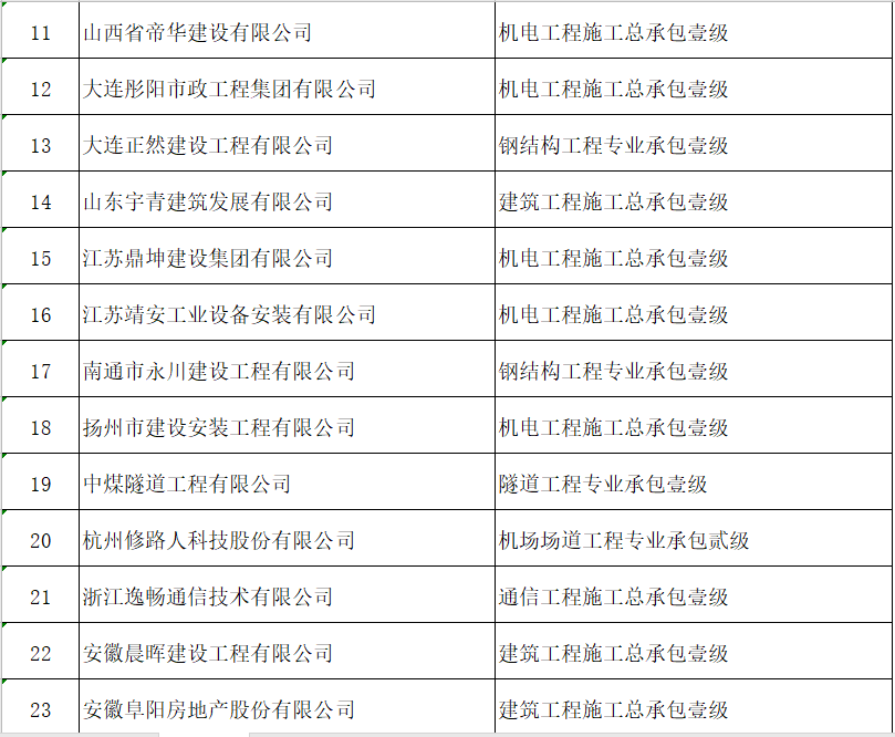 四家建企新增施工总承包特级资质: