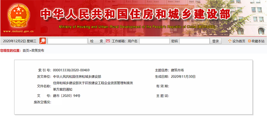 各省、自治区住房和城乡建设厅建筑资质,建筑资质代办,直辖市住房和城乡建设(管)委,北京市规划和自然资源委,新疆生产建设兵团住房和城乡建设局,国务院有关部门:《建设工程企业资质管理制度改革方案》已经2020年11月11日国务院常务会议审议通过,现印发给你们,请认真贯彻落实,进一步放宽建筑市场准入限制,优化审批服务,激发市场主体活力。同时,坚持放管结合,加大事中事后监管力度,切实保障建设工程质量安全。中华人民共和国住房和城乡建设部