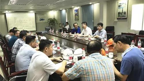 在视察工地之后,在东航基地(北区)项目部会议室听取了南北区总承包以及其他参建子集团的工作汇报。