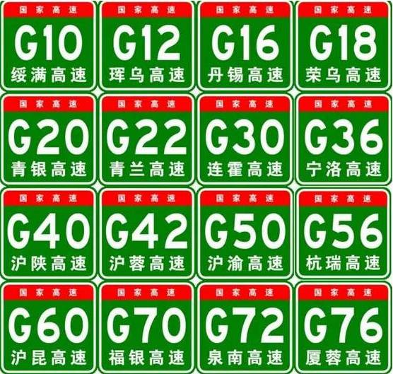 国家高速在标牌上都以绿底白字显示,G后面的数字有1位、2位或者4位,数字不同也代表不同的含义。