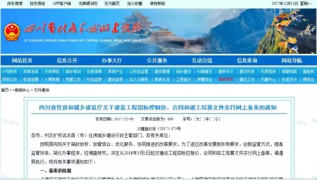 近日,四川省住建厅发文,要求自2018年3月1日起,对省内新建、扩建和改建的房屋建筑和市政基础设施工程项目,建设工程招标控制价、合同和竣工结算文件实行网上备案。