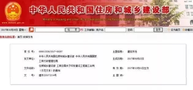 住建部、工商总局对2013版《建设工程施工合同(示范文本)》进行了修订,制定了《建设工程施工合同(示范文本)》(GF-2017-0201)。2017版《示范文本》自2017年10月1日起执行。2013版《示范文本》(GF-2013-0201)同时废止!
