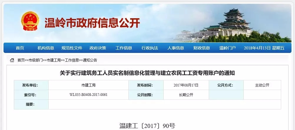 1、4月1日起,全省范围内依法取得施工许可的在建房屋建筑和市政基础设施工程必须实行建筑劳务实名制管理。