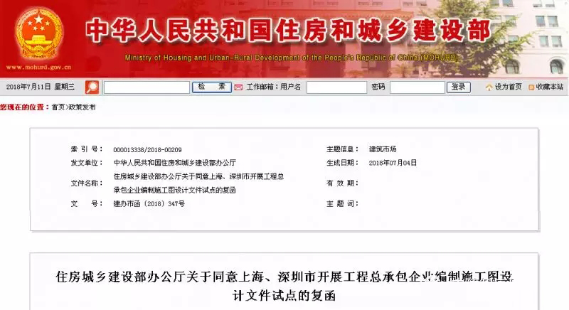 一、同意在上海、深圳市开展工程总承包企业编制施工图设计文件试点,同步开展建筑师负责制和全过程工程咨询试点。试点期限为3年,自2018年8月1日起至2021年7月31日止。