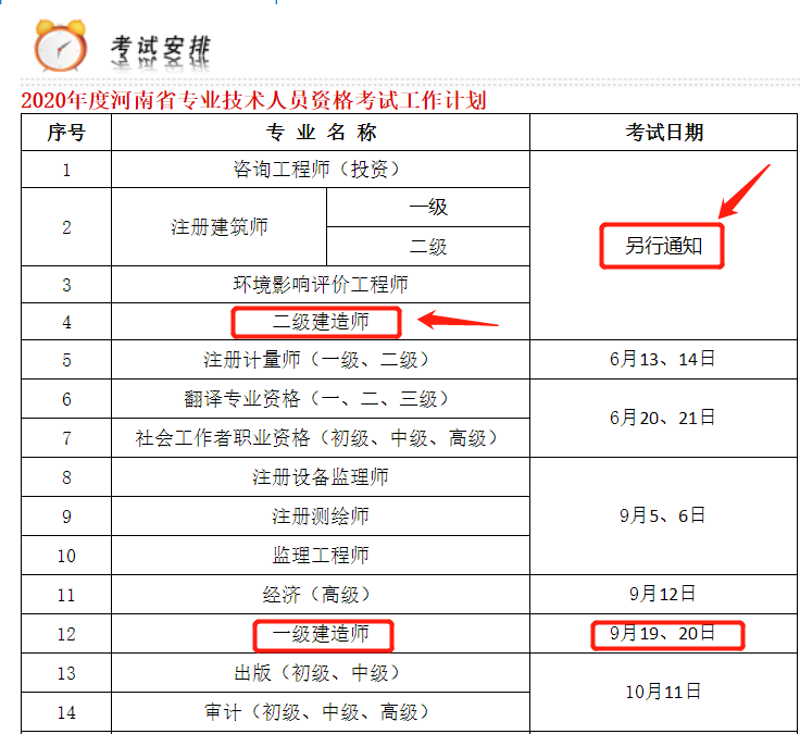 根据新冠肺炎疫情防控工作有关要求,经研究,原定于5月30日、5月31日举行的2020年度二级建造师执业资格考试(统考卷)推迟举行,具体考试日期和工作安排另行通知。