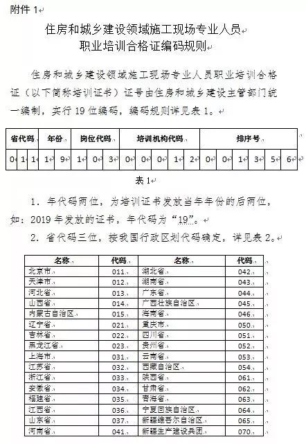 1.住房和城乡建设领域施工现场专业人员职业培训合格证编码规则